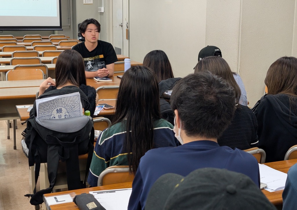両日共に、前半は登壇者(内定者)の自己紹介から始まり、講師が内定者にインタビューを行うという形式で進行されました。「採用選考の早期化が進む中、就活をいつから始めたのか」「どのような軸、セールスポイントで活動したか」「3年生の今の時期からやっておいた方が良いことは?」等の質問に、内定者からは、それぞれ独自の体験談を交えた回答をいただきました。